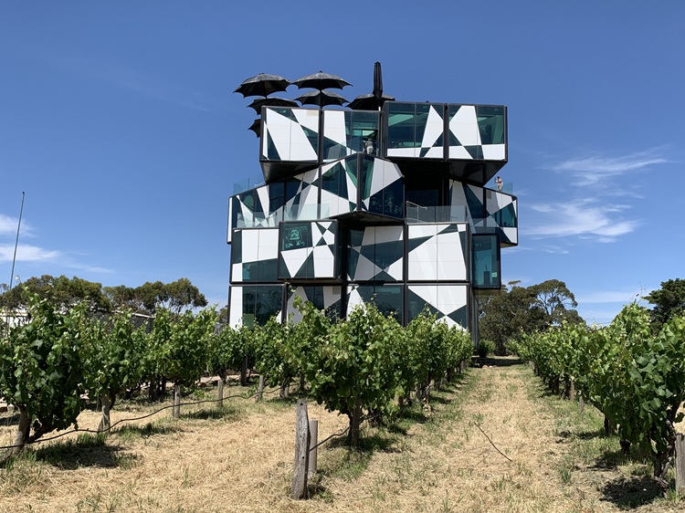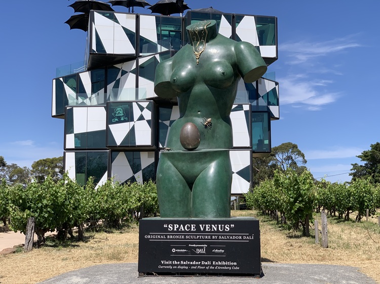 Although it wasn’t an official stop on our tour, our driver/guide stopped briefly at the d’Arenberg Cube, a quirky 4-level structure shaped like a cube puzzle, with art exhibits and a wine tasting room. He stopped for about five minutes so we could get off the van and take a few pictures. There were some Salvador Dali pieces inside the building as well as in front.