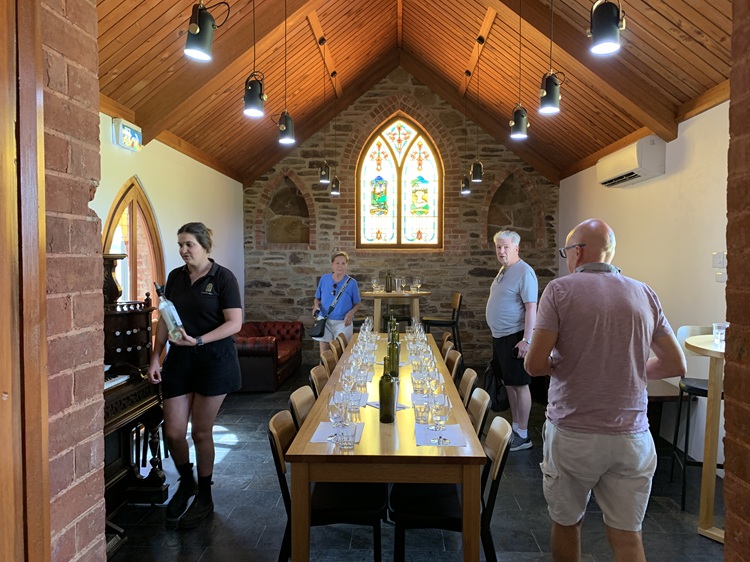 Our second winery was the Chapel Hill Winery. The tasting room was, in fact, a former chapel. We sampled a Vermentino, a Chardonnay, a Cabernet Franc, a Tempranillo, and an organic Shiraz.