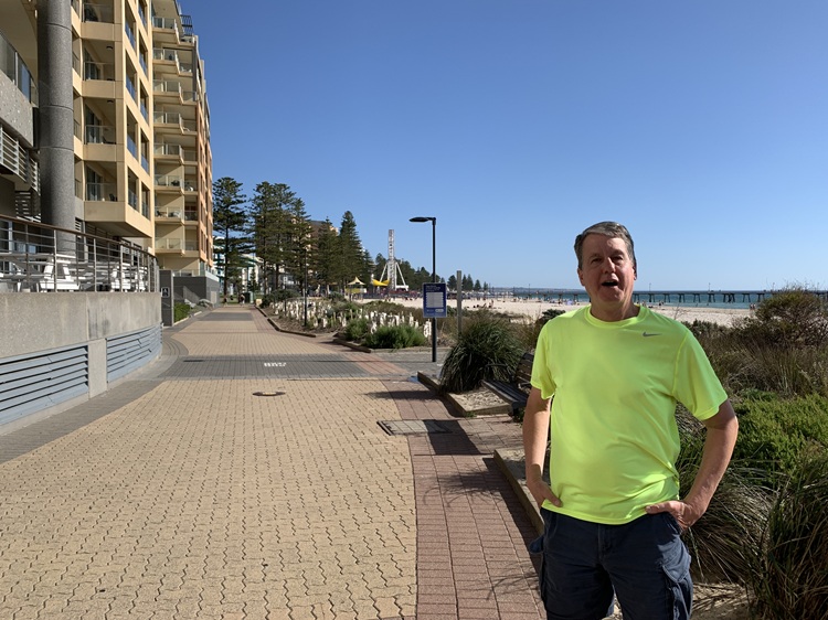 The last stop on our tour was Glenelg Beach, on the St. Vincent Gulf, west of Adelaide. We admired the beach because it wasn’t overbuilt with restaurants, bars, hotels, tourist shops, etc. (There were a few.) It wasn’t crowded that day, even though it was a beautiful, warm day in early summer. Both the beach and parking appeared to be free, and there were plenty of parking places. The homes and neighborhoods near the beach were very nice.