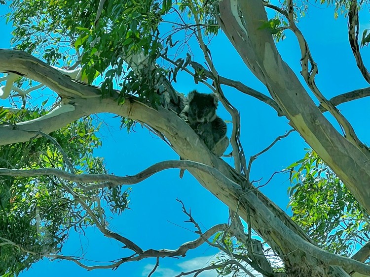As we were driving up into the Adelaide Hills, the driver turned off the four-lane highway and onto the old two-lane road the highway replaced, which had very little traffic other than bicyclists. He told us to keep our eyes open for koalas. Sure enough, we spotted one!