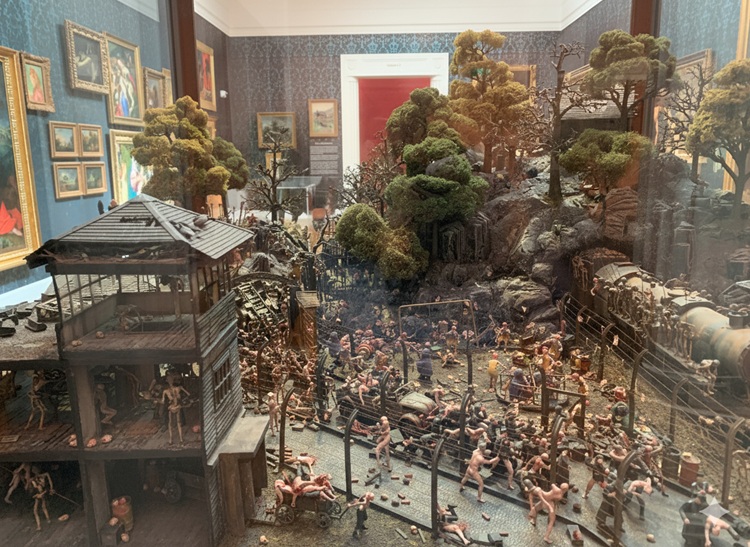We assumed this was a diorama depicting a Nazi concentration camp or POW camp.