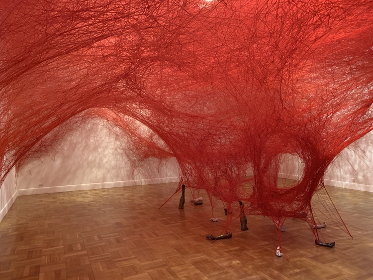This installation is titled “Absence Embodied,” by Japanese artist Chiharu Shiota. Yes, those are body parts on the floor. We have no idea what this means, but it was different.