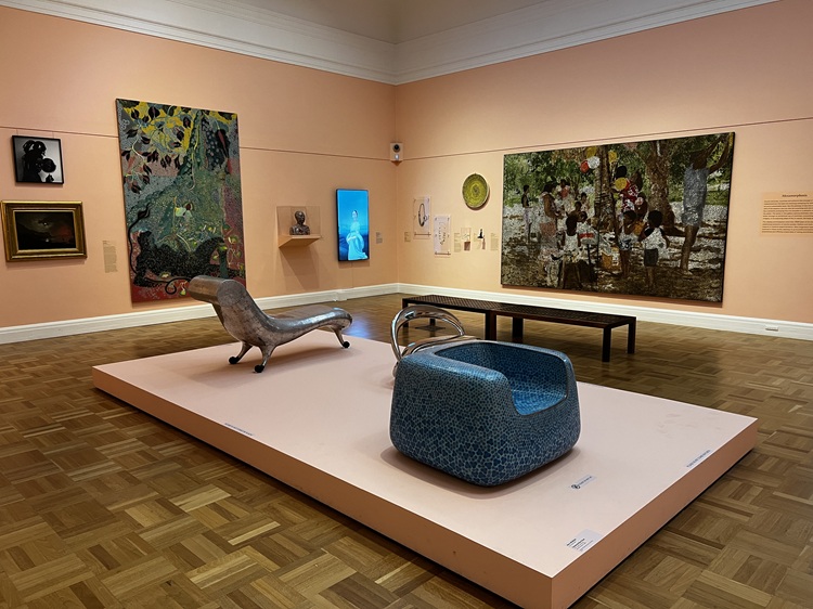 What made AGSA so appealing was the wide range of art on display. Paintings, sculptures, furniture, glass creations, fashion, suspended materials, and more were often placed together to create multi-faceted rooms. Old and new works were displayed side by side. We appreciated this boundary-free approach to experiencing art. The variety kept our interest and allowed us to notice each piece on an individual basis rather than being, for example, one painting in a room of fifty.
