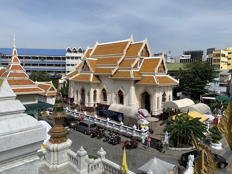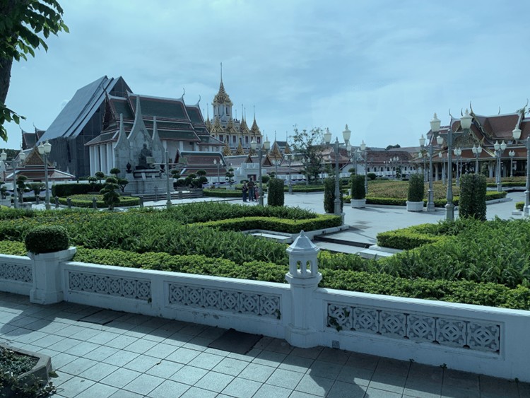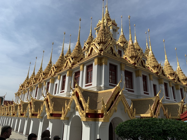 We visited another complex of temples and religious buildings. The temple in the center is the Loha Prasat Temple. Its 37 spires represent the 37 virtues leading to enlightenment. We climbed the 67-step circular staircase to a viewing deck near the top for nice views of the surrounding city.