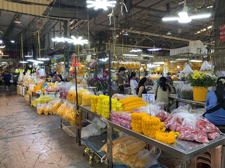 Next, we visited an enormous flower market. Flowers are a thriving industry in Bangkok. People use flowers to commemorate many occasions, such as weddings, births, and deaths, and they play a significant role in offerings to Buddha.