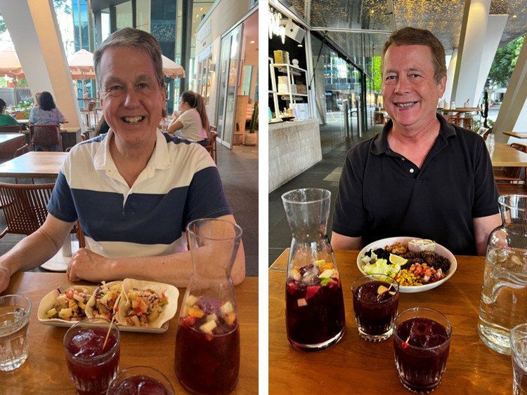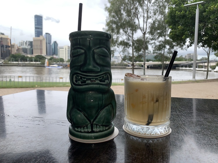 Next, we hiked across the Goodwill Bridge to the east end of the Southbank Parklands, which stretches for over 1 kilometer along the south bank of the Brisbane River. We felt like taking a break from walking, so we found a cute little restaurant/bar along the river that offered an appealing menu of tropical drinks. They were delicious, and we sipped them while enjoying the beautiful view.