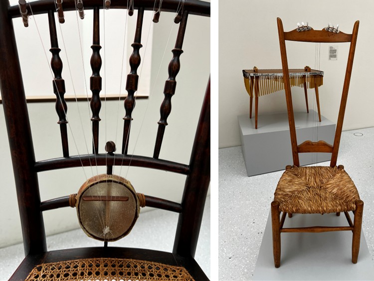 The gallery had modern art too. They had a few examples of furniture that had been made into musical instruments. It’s difficult to see the strings in the chair backs, but you can see the tuning keys at the top.