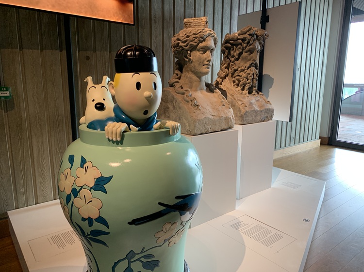 On another floor, Belgium comic legend Tintin was placed next to ancient Greek (or Roman) busts.