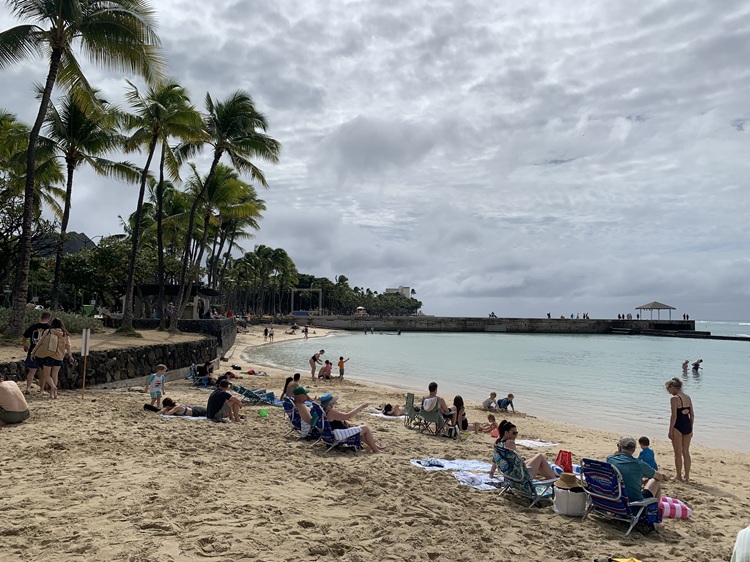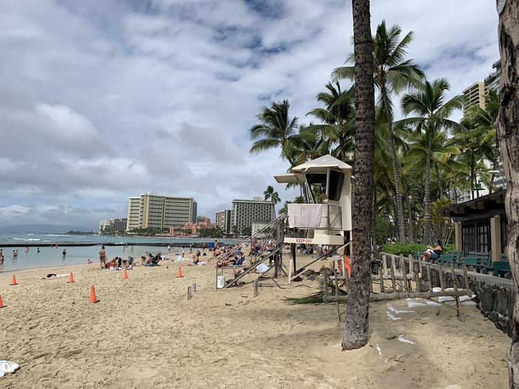 The weather cleared up a bit on our second full day in Waikiki, so we went for a walk along the beach.
