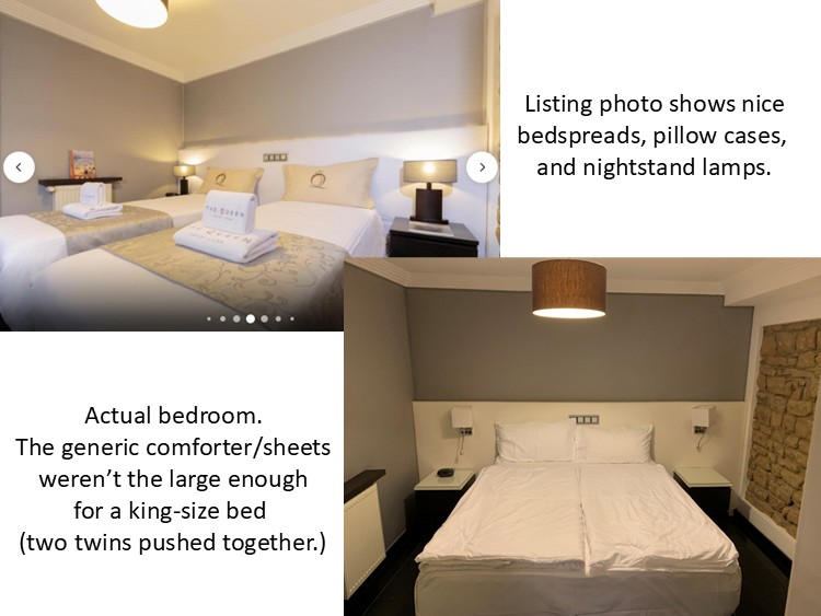 Our experiences with the places we stayed were decidedly mixed. On the plus side, they were clean, in safe neighborhoods, and the photos and descriptions in the listings were accurate. Our biggest complaint with most places was the uncomfortable beds.
