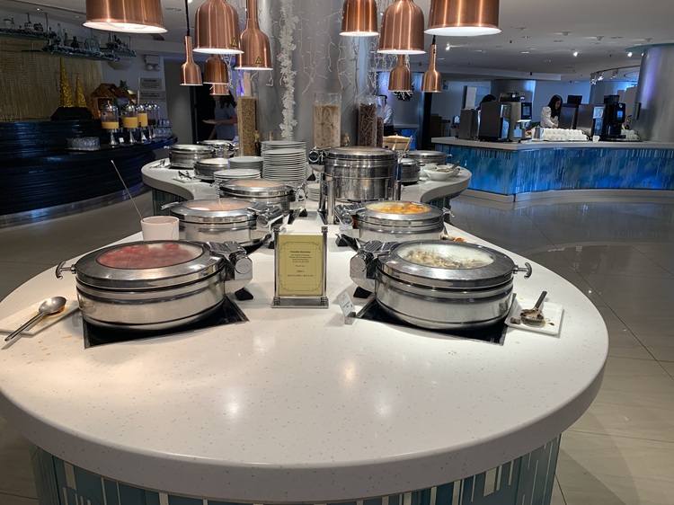 We spent our Thanksgiving onboard the Celebrity Solstice, on our last sea day before the end of the cruise. It was the first time we celebrated Thanksgiving while traveling. The ship elevated its lunchtime buffet offerings with a feast of international dishes and plentiful desserts, and the dinner menu included some Thanksgiving-themed options.