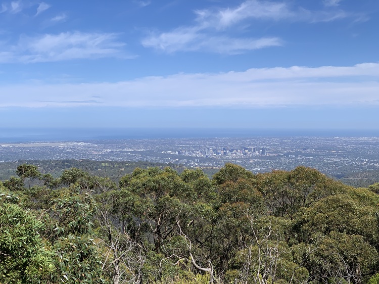 Here’s an example from our visit to Adelaide. When we were on Mt. Lofty overlooking Adelaide, Dave took this picture of the city in the distance: