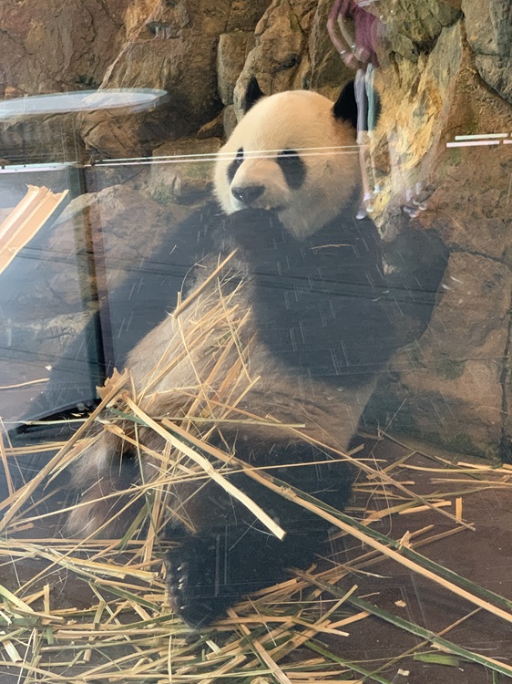 The glass enclosure for the panda at the Adelaide zoo was very reflective, almost ruining this picture. That’s Dave’s reflection just to the right of the panda’s head.