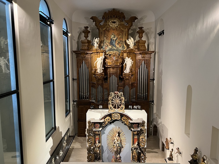 We enjoyed the Augustinermuseum more. Housed in a former monastery church, it featured mostly religious art and artifacts. While we’re not really into religious art (and we’ve seen tons of it by now), this place had some interesting pieces and was one of the more intriguing structures we’ve seen. Near the top of what was once the sanctuary, statues are mounted on the walls extending horizontally into the room. It was an unusual sight to stand on the floor and look up.
