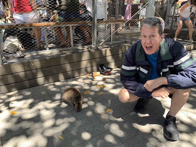 One day during our wonderful visit to Perth, we booked an excursion to Rottnest Island (Wadjemup), 18 km off the coast. It’s an 11 km-long, largely unspoiled island of pristine beaches, aquamarine bays, bike tracks, and walking trails. There are no cars, only a few tour buses and hundreds of bikes and e-bikes.