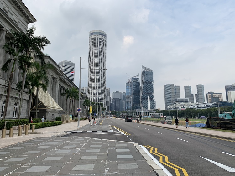 Singapore during the day, at an unusual moment when there were no cars and buses.
