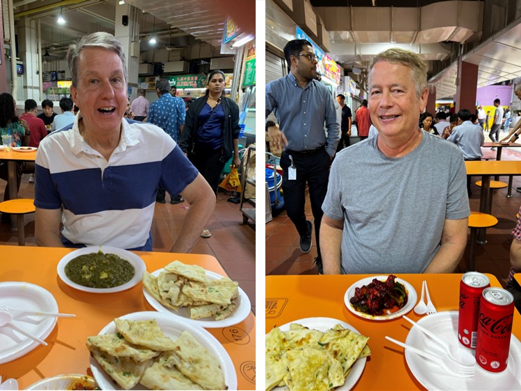 Singapore is noted for its “hawker centers” (food courts) all over town. Many travel videos and blogs claimed that you can find the most authentic and cheapest food in these places. There was a hawker center across the street from our apartment, so (with slight trepidation on Jeff’s part) we tried it. Not surprisingly, this hawker center offered mostly Indian food, with some Thai and other Asian fare as well.
