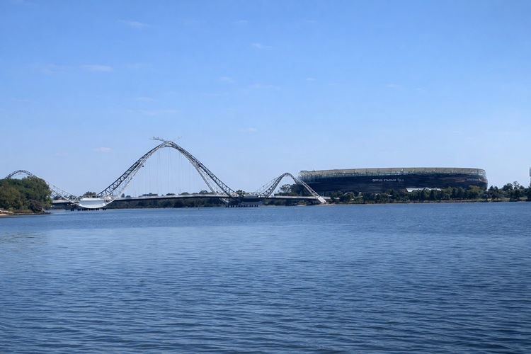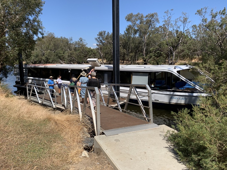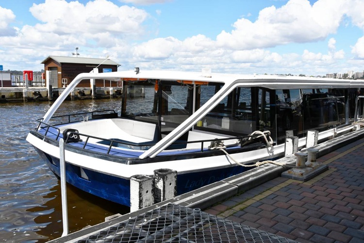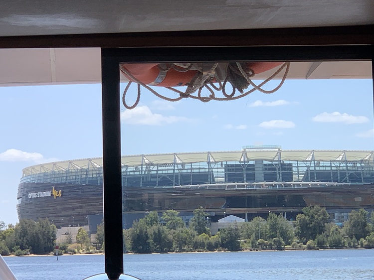 We boarded the low, wide boat at Elizabeth Quay. This boat was specially designed with a low profile for this cruise line so it could pass under the bridges along the way.