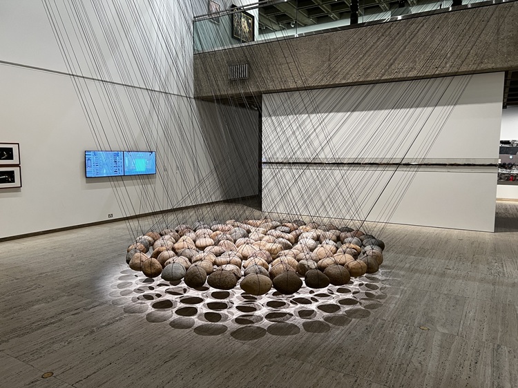 This work was displayed in the new addition. The rocks are all suspended. For whatever reason, it impressed us.