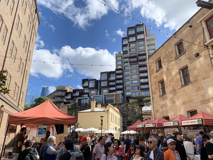 Many of the original buildings were demolished in the early 1900s, as they were already falling into disrepair and decay. In February 1971, a group of residents formed the Rocks Residents Group to oppose plans to demolish the remaining buildings and preserve the remaining neighborhood. It’s now a tourist destination. On the day we visited, a street market with local vendors was taking place.